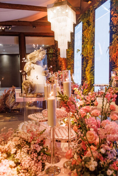 Esposa de Rodrigo Faro, Vera Viel escolheu uma decoração em tons de rosa e com muitas flores para celebrar seu aniversário de 50 anos e com bolo estiloso